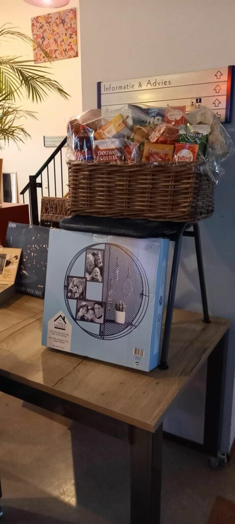 Niet zo gek ook. Want op zon regenachtige dag, na al weken regen, is iedereen wel in voor een spelletje Bingo. Bij de koffie/thee kregen we heerlijke zelfgebakken speculaas, en ook de pepernoten en chocolademuizen ontbraken niet. Ook vandaag hadden we weer mooie prijzen. Vooral ook cadeautjes voor de feestdagen. Gezellige kerstsetjes en als grote prijs voor de laatste ronde: een grote gevulde mand met allemaal etenswaren. De cadeautjes voor de loterij waren allemaal door de pieten ingepakt. Je wist dus niet welk cadeau je zou krijgen als jouw nummer werd getrokken. Ook vandaag hebben we weer heel veel lootjes verkocht. Zoals iedereen wel weet, gaat de opbrengst van de bingo’s naar de stichting Funtours voor het doen van uitjes en activiteiten en om onze bus op de weg te houden.